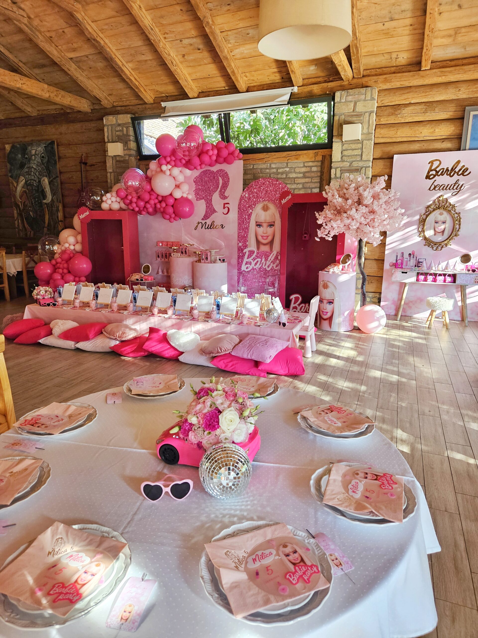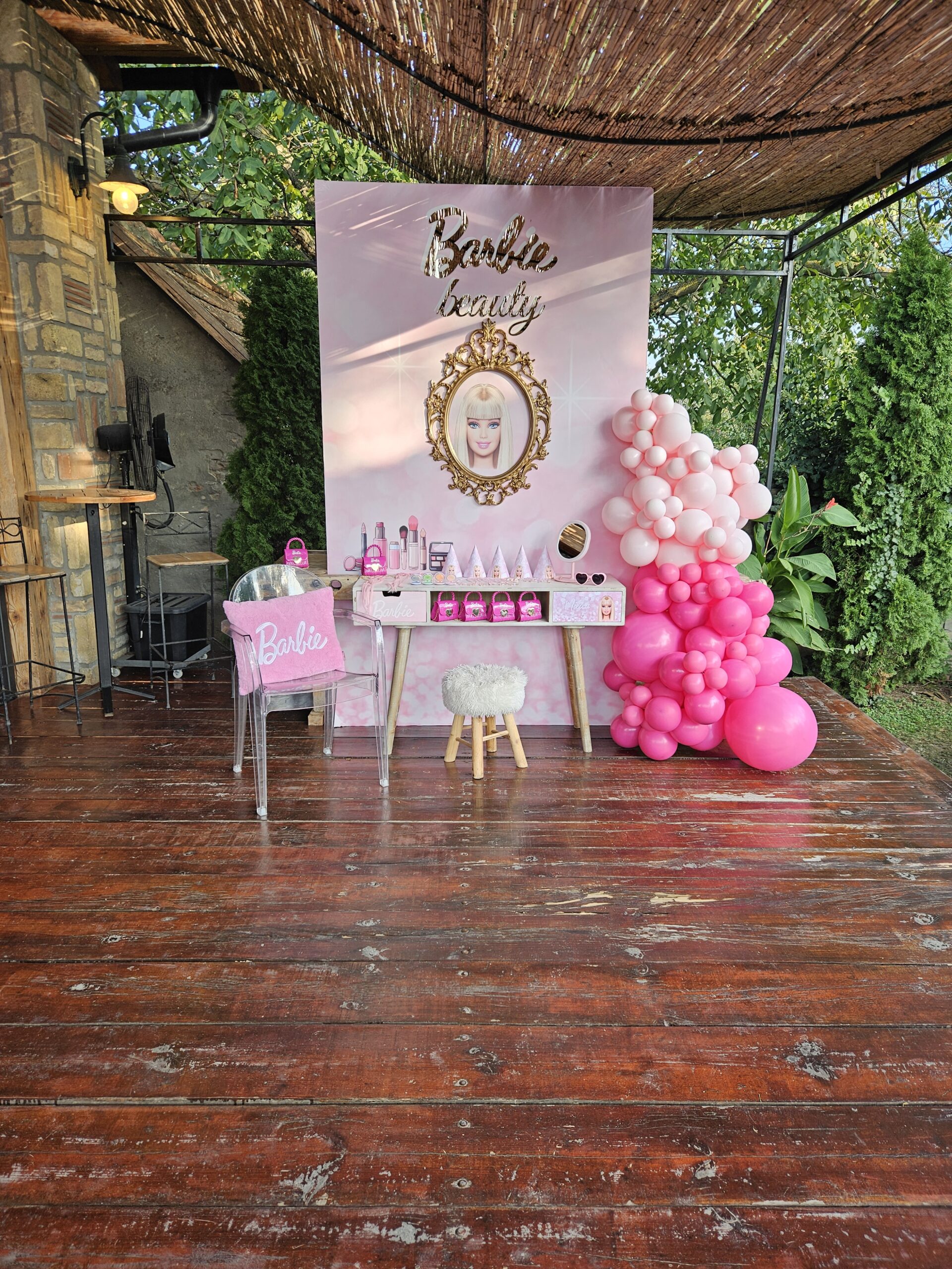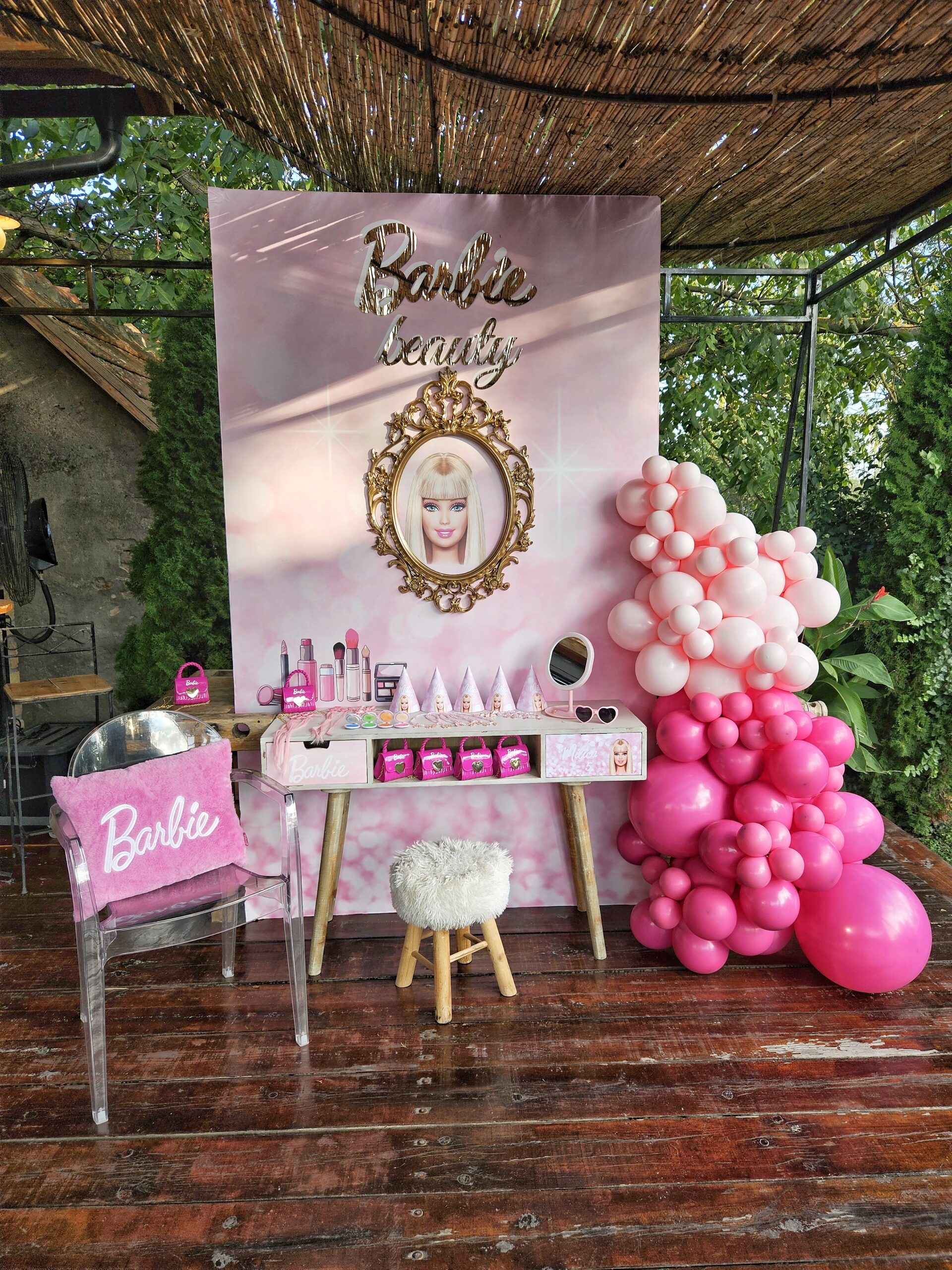 Izuzetno tražena dekoracija za rođendan malih princeza je upravo Barbie Doll. Barbi lik, šminka i prepoznatljiva roze boja su neizostavni elementi kada se radi o ovoj vrsti dekoracije. Upravo smo jedan deo Barbi sveta kreirali i za rođendan još jedne divne devojčice.