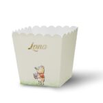 Ko ne voli kokice? Ove hrskave grickalice su savršene za rođendanske proslave, jer su ukusne, lagane i lako se dele. Kutijice za kokice su napravljene od papira i imaju oblik kvadrata koji omogućava da se kokice lako uzimaju. Možete ih naručiti u temi koju vi odaberete i u bojama koje se slažu sa vašom dekoracijom. Svaka kutijica ima personalizovano ime koje možete odštampati u boji po želji ili u elegantnom zlatnom ili srebrnom otisku. Kutijice za kokice su praktične i elegantne posude koje će dodati šarm vašem stolu. Deca će uživati u grickanju kokica dok gledaju crtani film, igraju se ili pričaju.