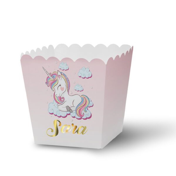 Ko ne voli kokice? Ove hrskave grickalice su savršene za rođendanske proslave, jer su ukusne, lagane i lako se dele. Kutijice za kokice su napravljene od papira i imaju oblik kvadrata koji omogućava da se kokice lako uzimaju. Možete ih naručiti u temi koju vi odaberete i u bojama koje se slažu sa vašom dekoracijom. Svaka kutijica ima personalizovano ime koje možete odštampati u boji po želji ili u elegantnom zlatnom ili srebrnom otisku. Kutijice za kokice su praktične i elegantne posude koje će dodati šarm vašem stolu. Deca će uživati u grickanju kokica dok gledaju crtani film, igraju se ili pričaju.