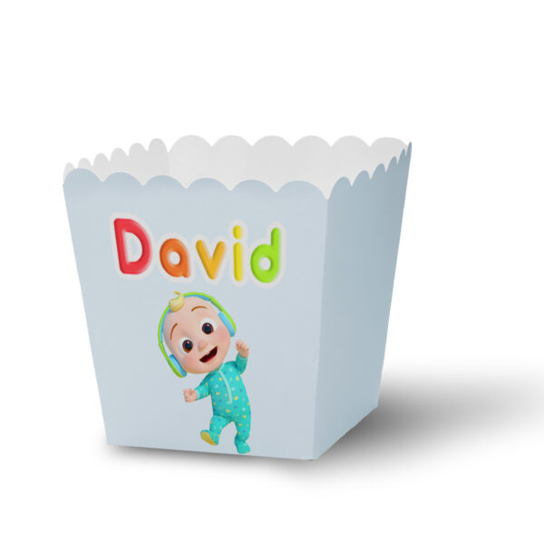 Ko ne voli kokice? Ove hrskave grickalice su savršene za rođendanske proslave, jer su ukusne, lagane i lako se dele. Kutijice za kokice su napravljene od papira i imaju oblik kvadrata koji omogućava da se kokice lako uzimaju. Možete ih naručiti u temi koju vi odaberete i u bojama koje se slažu sa vašom dekoracijom. Svaka kutijica ima personalizovano ime koje možete odštampati u boji po želji ili u elegantnom zlatnom ili srebrnom otisku. Kutijice za kokice su praktične i elegantne posude koje će dodati šarm vašem stolu. Deca će uživati u grickanju kokica dok gledaju crtani film, igraju se ili pričaju.