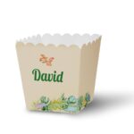 Ko ne voli kokice? Ove hrskave grickalice su savršene za rođendanske proslave, jer su ukusne, lagane i lako se dele. Kutijice za kokice su napravljene od papira i imaju oblik kvadrata koji omogućava da se kokice lako uzimaju. Možete ih naručiti u temi koju vi odaberete i u bojama koje se slažu sa vašom dekoracijom. Svaka kutijica ima personalizovano ime koje možete odštampati u boji po želji ili u elegantnom zlatnom ili srebrnom otisku. Kutijice za kokice su praktične i elegantne posude koje će dodati šarm vašem stolu. Deca će uživati u grickanju kokica dok gledaju crtani film, igraju se ili pričaju.