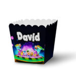 Ko ne voli kokice? Ove hrskave grickalice su savršene za rođendanske proslave, jer su ukusne, lagane i lako se dele. Kutijice za kokice su napravljene od papira i imaju oblik kvadrata koji omogućava da se kokice lako uzimaju. Možete ih naručiti u temi koju vi odaberete i u bojama koje se slažu sa vašom dekoracijom. Svaka kutijica ima personalizovano ime koje možete odštampati u boji po želji ili u elegantnom zlatnom ili srebrnom otisku. Kutijice za kokice su praktične i elegantne posude koje će dodati šarm vašem stolu. Deca će uživati u grickanju kokica dok gledaju crtani film, igraju se ili pričaju.
