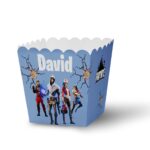 Ko ne voli kokice? Ove hrskave grickalice su savršene za rođendanske proslave, jer su ukusne, lagane i lako se dele. Kutijice za kokice su napravljene od papira i imaju oblik kvadrata koji omogućava da se kokice lako uzimaju. Možete ih naručiti u temi koju vi odaberete i u bojama koje se slažu sa vašom dekoracijom. Svaka kutijica ima personalizovano ime koje možete odštampati u boji po želji ili u elegantnom zlatnom ili srebrnom otisku. Kutijice za kokice su praktične i elegantne posude koje će dodati šarm vašem stolu. Deca će uživati u grickanju kokica dok gledaju crtani film, igraju se ili pričaju.