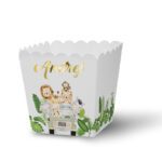 Ko ne voli kokice? Ove hrskave grickalice su savršene za rođendanske proslave, jer su ukusne, lagane i lako se dele. Kutijice za kokice su napravljene od papira i imaju oblik kvadrata koji omogućava da se kokice lako uzimaju. Možete ih naručiti u temi koju vi odaberete i u bojama koje se slažu sa vašom dekoracijom. Svaka kutijica ima personalizovano ime koje možete odštampati u boji po želji ili u elegantnom zlatnom ili srebrnom otisku. Kutijice za kokice su praktične i elegantne posude koje će dodati šarm vašem stolu. Deca će uživati u grickanju kokica dok gledaju crtani film, igraju se ili pričaju.