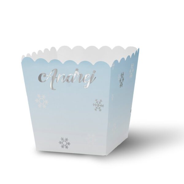 Ko ne voli kokice? Ove hrskave grickalice su savršene za rođendanske proslave, jer su ukusne, lagane i lako se dele. Kutijice za kokice su napravljene od papira i imaju oblik kvadrata koji omogućava da se kokice lako uzimaju. Možete ih naručiti u temi koju vi odaberete i u bojama koje se slažu sa vašom dekoracijom. Svaka kutijica ima personalizovano ime koje možete odštampati u boji po želji ili u elegantnom zlatnom ili srebrnom otisku. Kutijice za kokice su praktične i elegantne posude koje će dodati šarm vašem stolu. Deca će uživati u grickanju kokica dok gledaju crtani film, igraju se ili pričaju.