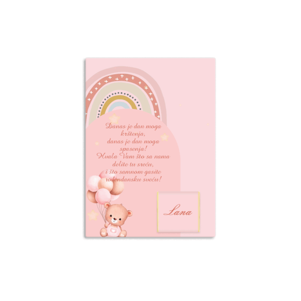 Zahvalnica sa čokoladicom meda sa balonima rozi II a6